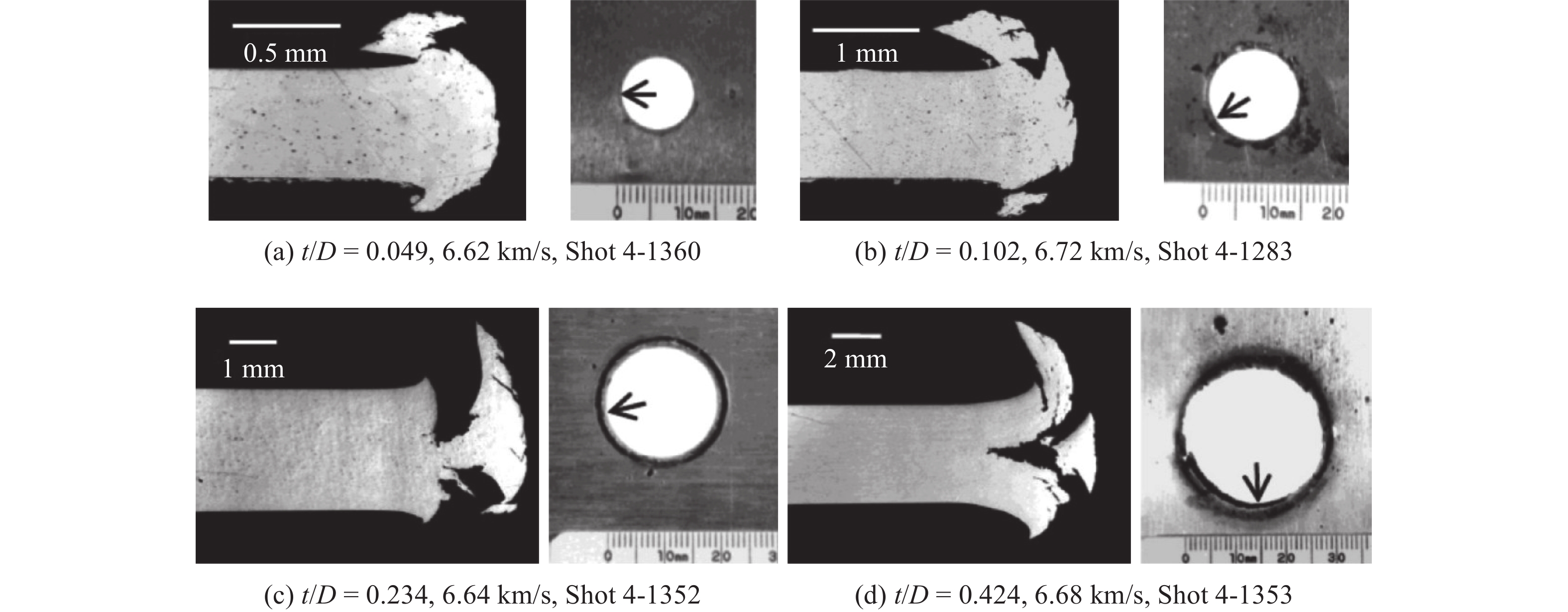 以空间碎片防护为背景,回顾了超高速铝弹丸正撞击单层和双层铝合金防护结构的研究进展,讨论了目前针对超高速撞击的弹丸发射技术和数值模拟方法(如Euler方法、无网格方法等)的优缺点。数值模拟不仅建立在离散方法上,还需要提供准确的材料本构模型和状态方程。介绍了常用材料模型(包括Johnson-Cook、Steinberg-Guinan模型)和状态方程(包括Tillotson、ANEOS、SESAME、GRAY三相状态方程)。基于实验和数值模拟,目前对7 km/s以下的超高速撞击物理过程已经认识得比较清楚。对单层板,重点讨论了板的穿孔特征和孔径模型;对双层板,除了前板的穿孔外,还讨论了碎片云的分布特征、材料相变、碎片云的相态分布、弹丸形状的影响、碎片云的散布模型以及碎片云对后板造成的破坏特征。最后介绍了工程防护中较为重要的防护结构的弹道极限方程。单层板和双层板的弹道极限方程研究近年来取得了较大进展。本文回顾了国内外常用的弹道极限方程以及近年来新提出的理论模型和基于人工神经网络的模型等。