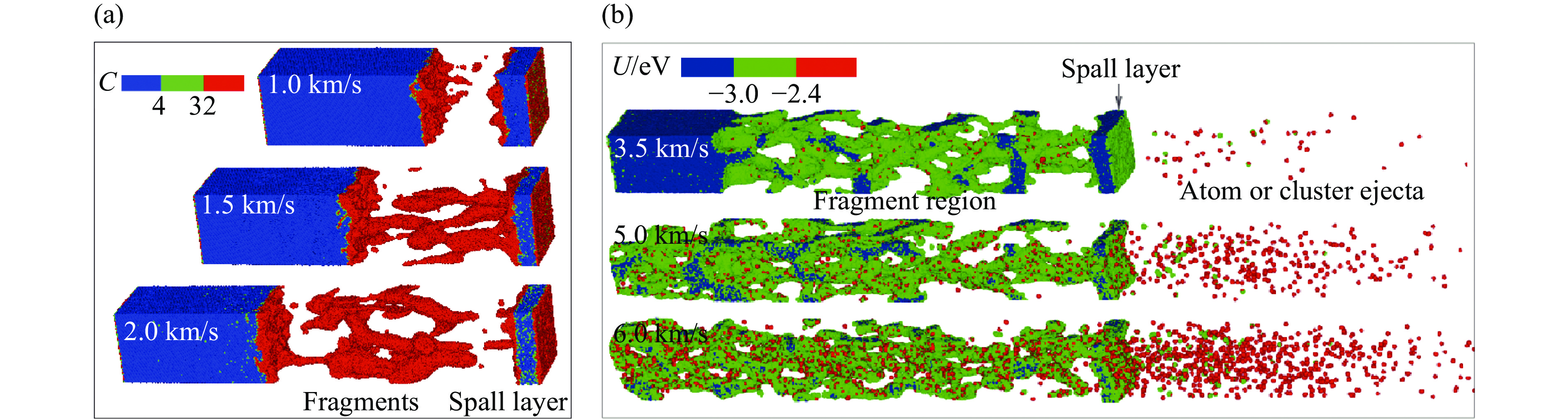 随着计算机技术和实验诊断技术的发展,分子动力学(MD)方法在冲击动力学领域发挥着越来越重要的作用。从MD方法的基本原理出发,介绍了积分算法、相互作用势、常用的数据处理方法,系统梳理了MD方法在冲击加载下金属材料的塑性变形、相变、动态损伤断裂(层裂)等研究的应用。其中:在冲击塑性方面,主要阐述单晶、双晶和多晶体系中的塑性变形机理,以及变形过程与微结构等的联系;在冲击相变方面,主要以金属铁为例,介绍耦合冲击相变与冲击塑性的MD计算模拟工作;在动态损伤断裂方面,主要阐述冲击加载下金属材料中孔洞动态演化及贯通、激光加载下材料的动态响应等工作。最后,对MD方法的未来应用进行了展望,以期为相关领域的研究提供参考。