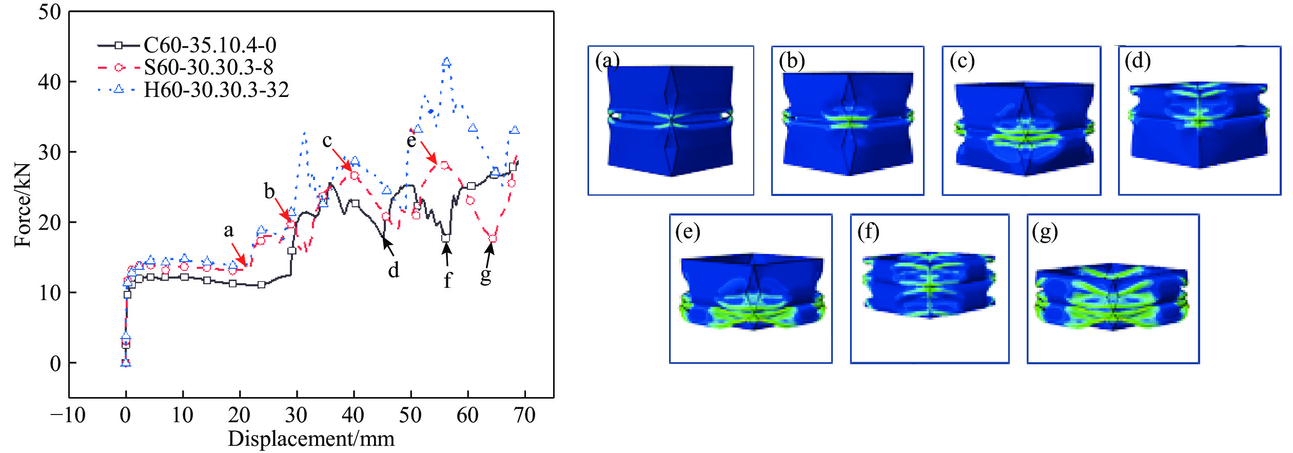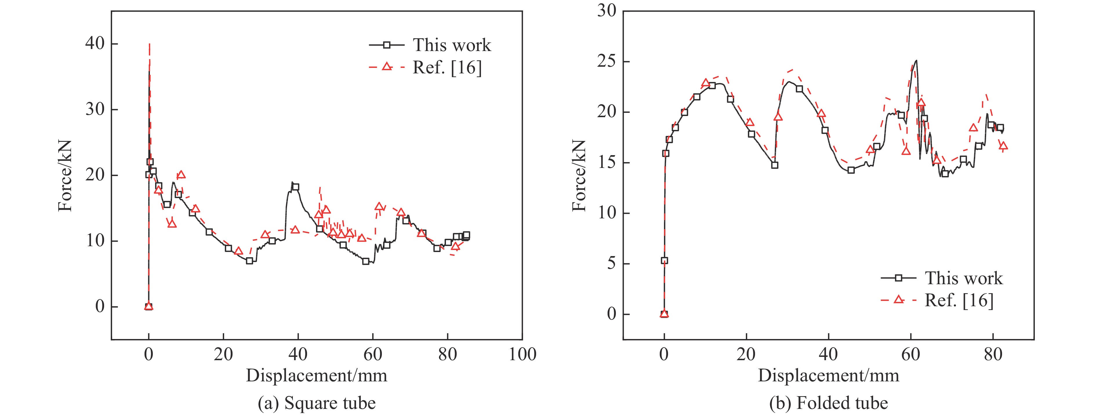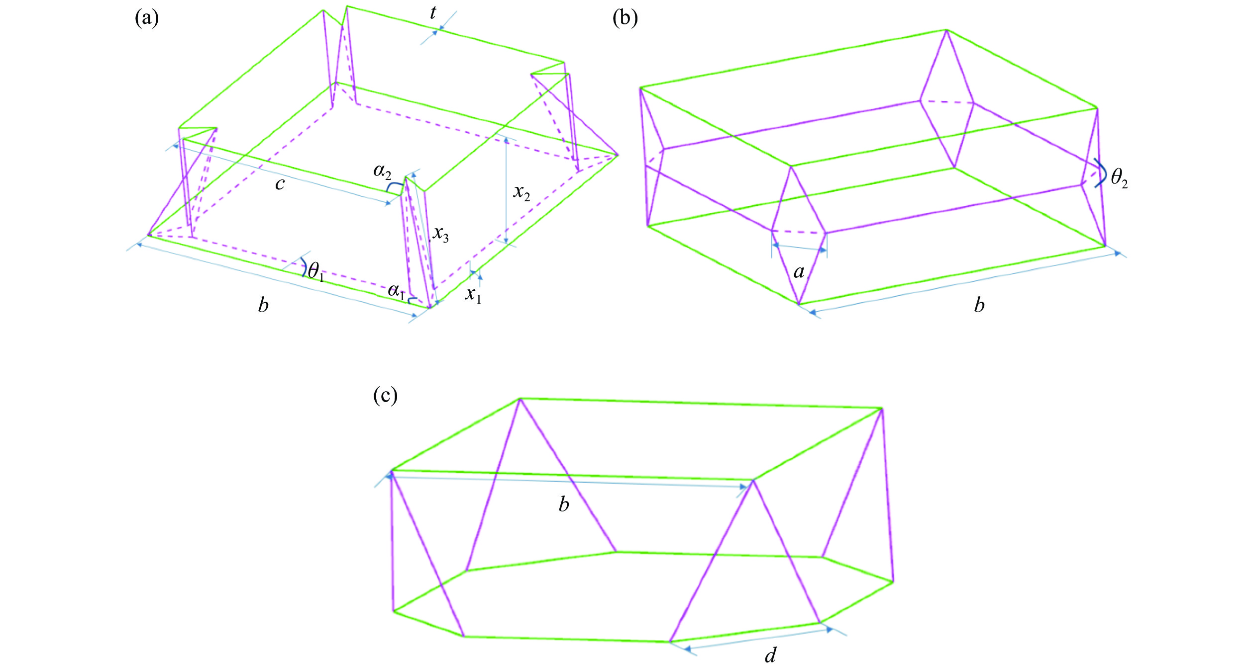 薄壁管是一种常见的吸能结构,在薄壁管中引入折纹可以诱导薄壁管发生变形,有效降低薄壁管屈曲的初始峰值力并提高其能量吸收。目前,大部分折纹管受到轴向压缩时,初始峰值力后的压溃力下降显著,降低了折纹管的吸能性能。为有效提高折纹管的吸能性能,并降低折纹管的初始峰值力,在方管中引入不同形式的折纹得到折叠收缩管,利用ABAQUS/Explicit模拟设计折叠收缩管的准静态压缩,得到其变形及力与位移曲线。结果显示,与传统方管和菱形折纹管相比,折叠收缩管的初始峰值力显著降低,且压溃力随着压缩距离的增加呈梯度上升趋势,大幅提升了薄壁管的能量吸收性能。另外,系统研究了折叠收缩管的几何参数对其性能的影响,获得了性能优异的折纹管。