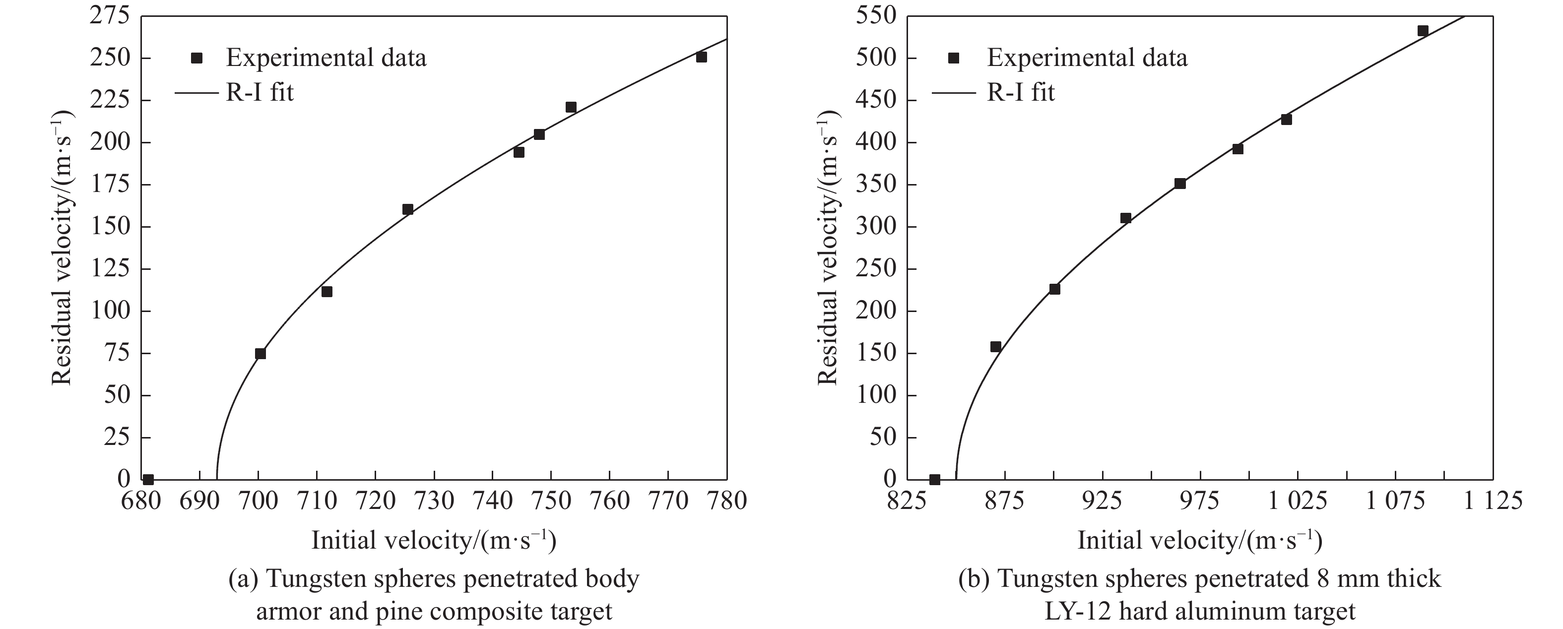 为获得小钨球对防弹衣加人体等效靶的侵彻性能,对小钨球侵彻Ⅲ级软体防弹衣加25 mm厚红松靶进行了试验研究。在此基础上,结合小钨球侵彻LY-12硬铝靶试验与数值模拟,研究了LY-12硬铝靶与Ⅲ级软体防弹衣加25 mm厚红松靶之间的等效关系,并通过量纲分析方法建立了小钨球侵彻Ⅲ级软体防弹衣加25 mm厚红松靶的弹道极限预测公式,分析了小钨球质量变化对其侵彻性能影响的规律。结果表明:对于小钨球的侵彻,Ⅲ级软体防弹衣加25 mm厚红松靶可等效为6.2 mm厚LY-12硬铝靶;弹道极限预测公式的预测值与试验值吻合良好,并且随着钨球质量的增加,弹道极限近似服从幂函数递减规律。研究结果对单兵破片战斗部的改进设计具有一定的参考价值。