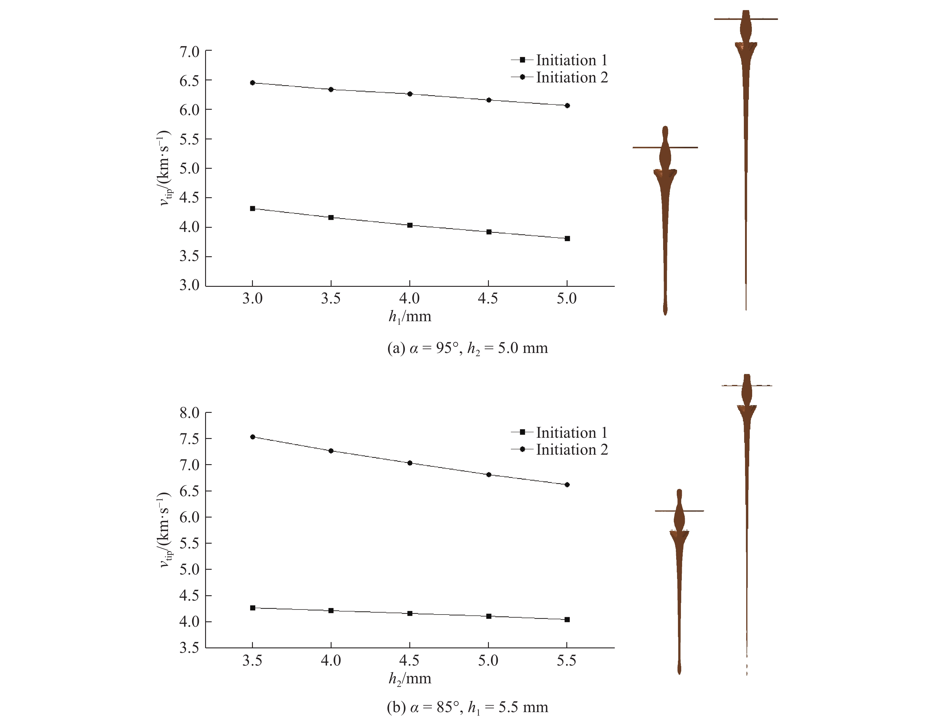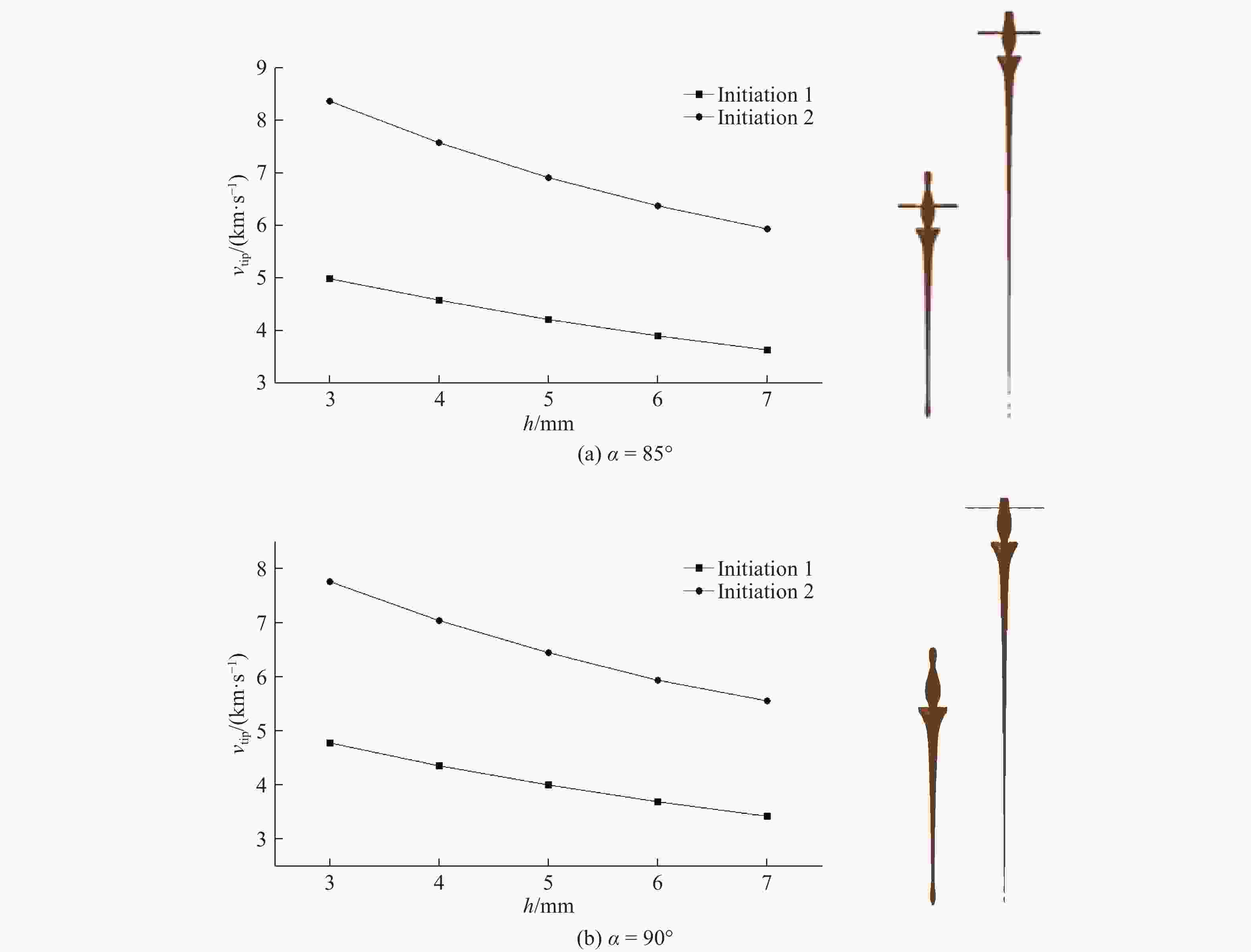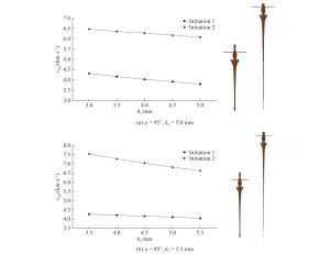 Project De/mm L/mm α/(°) h/mm h1/mm h2/mm R/mm Initiation mode 1 100.0 0.90De 70−100 0.051De 0.10De 1, 2 2 100.0 0.90De 85, 90 0.030De−0.070De 0.10De 1, 2 3 100.0 0.90De 85 0.035De−0.055De 0.055De 0.10De 1, 2 95 0.050De 0.050De−0.030De 表 3 正交试验的各因素水平