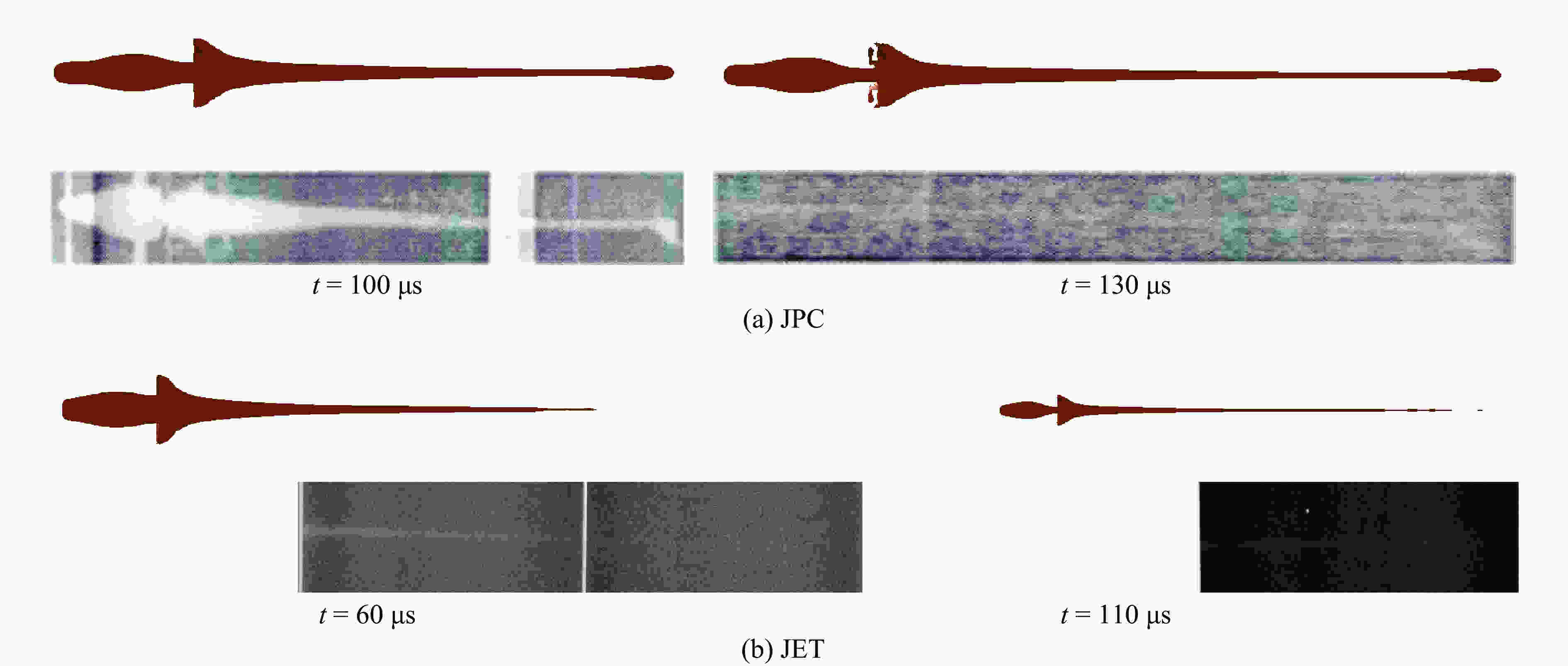 Component Material ρ/(g·cm−3) Material model Equation of state Liner Copper 8.960 Johnson_Cook Grüneisen Explosive 8701 1.695 High_Explosive_Burn JWL Air 1.250 × 10−3 Null Grüneisen 表 2 药型罩结构参数仿真方案