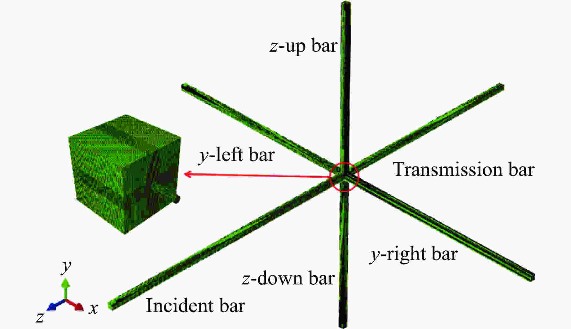 摘要: 对于水泥砂浆的抗弹性能研究,目前很少考虑靶体所处的应力状态,为此基于自研的真三轴静载混凝土侵彻实验装置和水泥砂浆抗弹性能实验结果,讨论了水泥砂浆在不同应力状态下的开坑深度和开坑阻力。应用侵彻深度的经验公式和基于HJC模型的有限元数值计算方法,对比分析了水泥砂浆侵彻实验,结果表明,对于低速冲击过程,采用UMIST公式和HJC模型的数值分析对开坑深度的预测较为有效。应力状态对开坑深度有明显的影响,即随着侧限增加,水泥砂浆的三轴强度提高,弹丸的开坑深度减小。应用基于HJC模型的数值分析方法,研究了弹丸开坑过程中弹体内的加速度波形和y轴支撑杆上的波形,结果表明:弹丸开坑过程对两种波形都有影响,其中y轴支撑杆上的波形可以更好地反映开坑过程。虽然数值模拟结果与实验波形的趋势基本一致,但是应力幅值有一定的差异,说明基于HJC模型的数值分析对开坑阻力的计算能力尚待提高。Abstract: The stress state of the target was seldom taken into account in the investigation of the ballistic performance of cement mortar. Based on the self-developed penetration experimental system of concrete under true-triaxial confinement and the experimental results of the anti-bullet performance of cement mortar, the depth and resistance of opening pit under different stress states were discussed in the present paper. The empirical formula of penetration depth and finite element method (FEM) based on HJC model were used to analyze the penetration behaviors of cement mortar results. The results showed that under the lower velocity impact, the UMIST formula and the HJC model were both effective in the prediction of pit depth. At the same time, the stress state had an obvious influence on pit depth. With the increase of the lateral limit, the cement mortar strength increases and the pit depth of the projectile decreases. The acceleration wave in bullet and the wave in the y-axis support rod were calculated by FEM based on HJC model. The results showed that the process of projectile opening pit would be recorded by these two waveforms, and the wave structure in the y-axis support rod would be more significantly. Although the tendency of the simulation results was basically consistent with the experimental waves, there was difference in the stress amplitude to some degree, which also indicated that the calculation method of the pit opening resistance based on HJC model needed to be improved.
