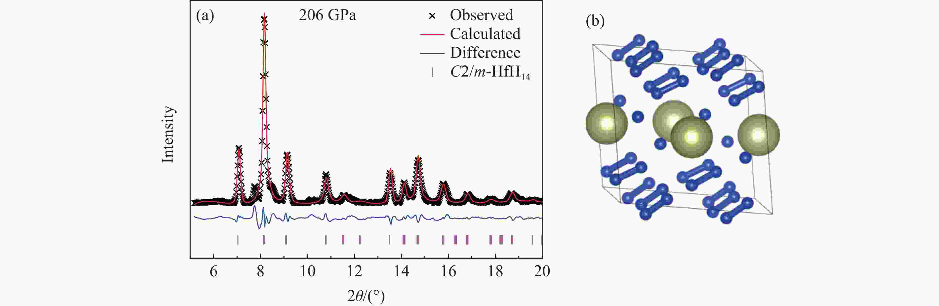 Figure 5. (a) The in-situ high pressure synchrotron X-ray diffraction pattern measured of lutetium polyhydride sample and its refinement under 185 GPa[27]; (b) scheme of crystal structure of Pm