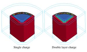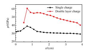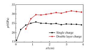 Figure  13.  Detonation pressure of single- and double-layer charge with two-point detonation
