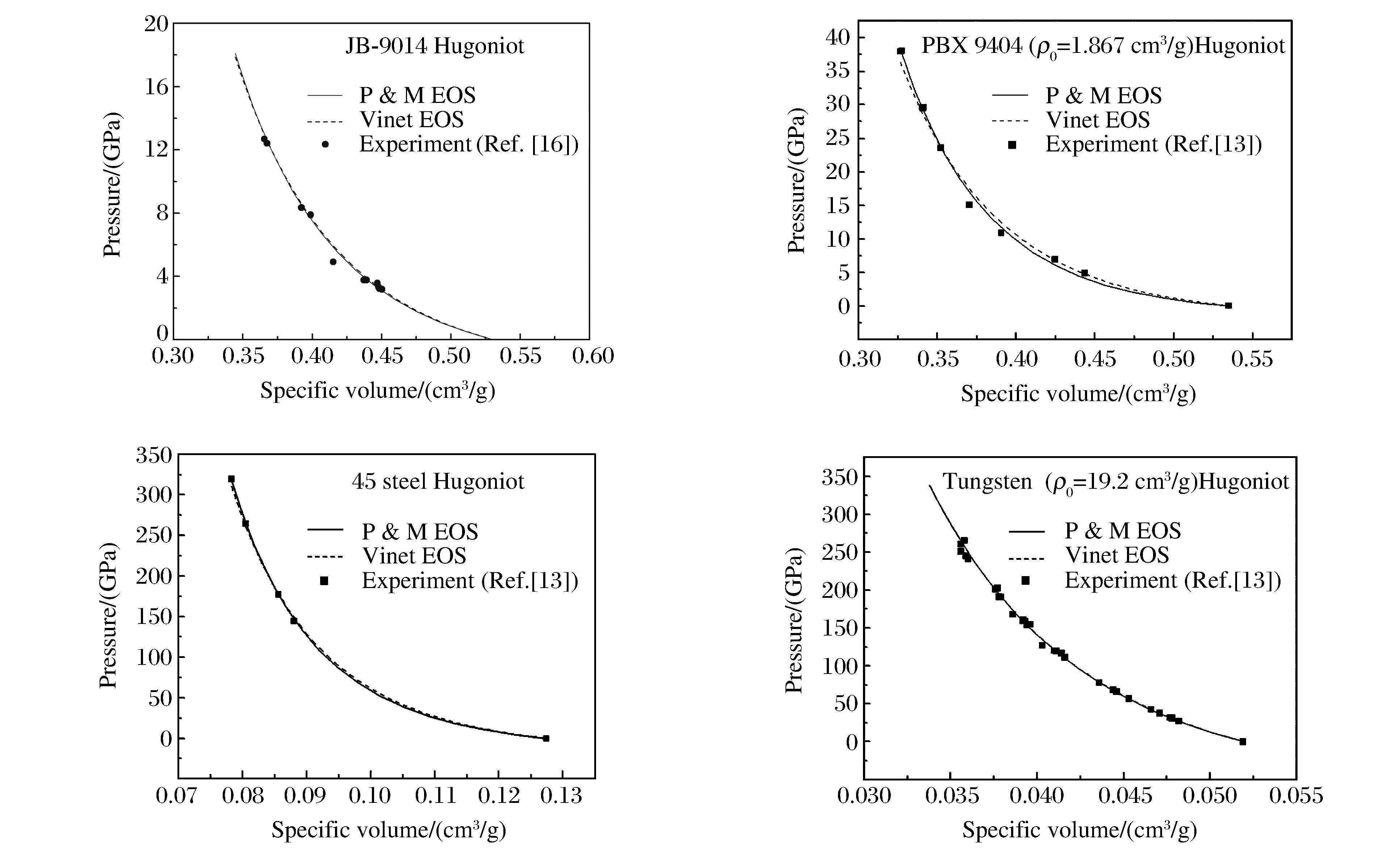 在一定程度上,状态方程的形式与外推数据的置信度有直接影响,对于在高压下发生反应的材料,通过外推方式计算其未反应状态具有一定的意义。依据由Vinet以及Parsafar和Mason(简称P-M)等人提出的两种统一状态方程,对以其为等温压缩线的完全状态方程进行了研究。根据对热力学状态量的分析,从热压系数和定容比热入手,对完全状态方程的建立进行了讨论,给出了在已知物质等温线条件下构成状态方程的方法,并推导了Vinet和P-M两种表达式的完全状态方程形式。以几种材料为例,通过实验测量的冲击绝热线和有关参数,采用最小二乘法,对其状态方程进行了拟合。结果表明,由冲击绝热线拟合的状态方程与实验结果相吻合。