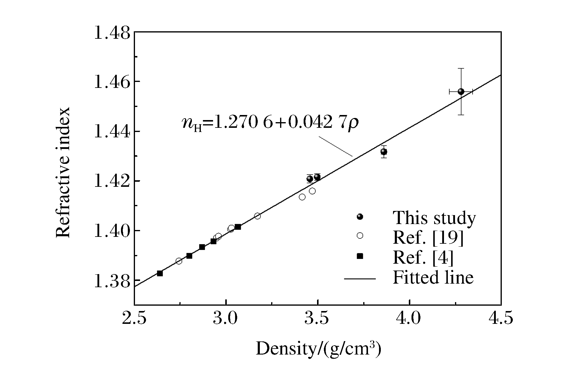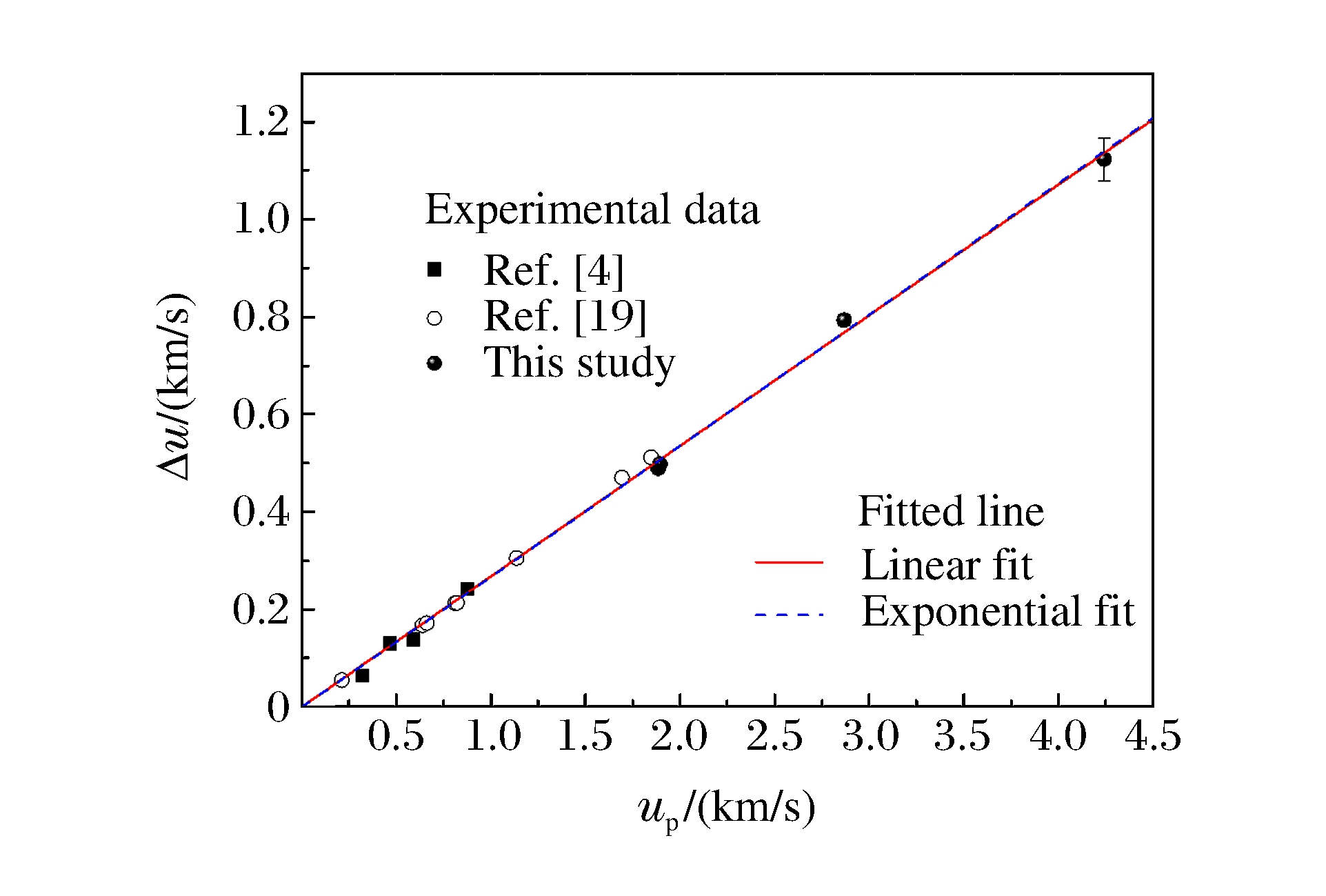 通过平板撞击实验,采用激光干涉测试技术,研究了1 550 nm波长下LiF单晶的高压折射率与窗口速度的修正关系,实验压力范围为38~124 GPa,拓展了现有1 550 nm波长下LiF单晶的高压折射率数据,给出了124 GPa压力范围内1 550 nm波长下LiF窗口速度的线性修正方程。研究结果可为分析冲击压缩实验中通过加窗激光多普勒探针测试技术获得的样品界面速度的数据提供参考。