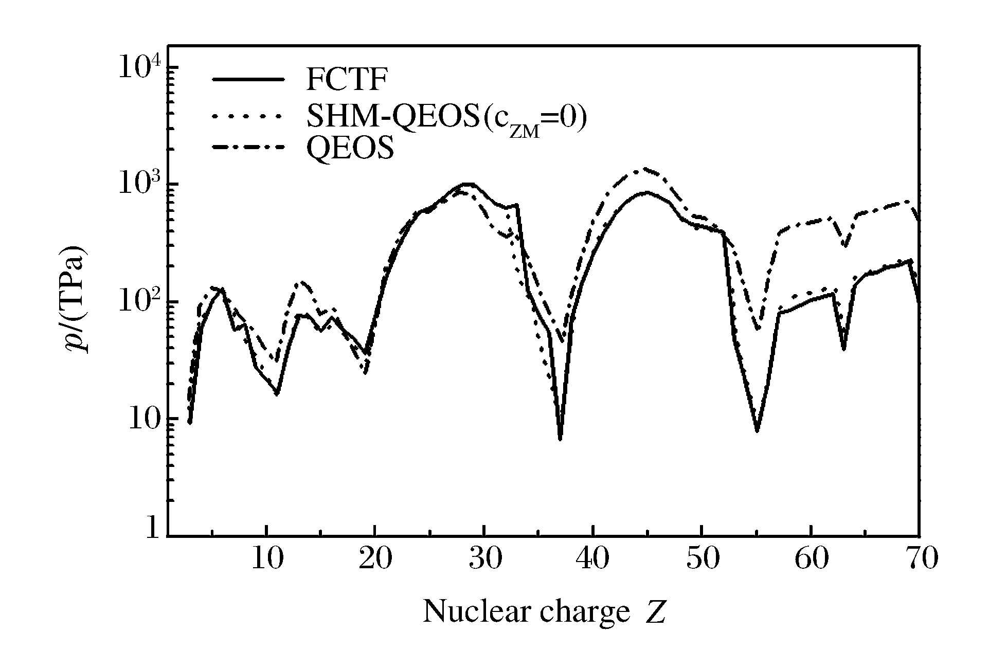 在三项式状态方程概念框架内构建了单质固体材料的通用状态方程模型,以绝对零度Thomas-Fermi模型结果的一部分近似作为被压缩固体的冷能和冷压,并利用Cowan模型和Faussurier类氢平均原子模型得到离子与电子的热能和热压。数值计算证实,在材料压缩比大于2的条件下,该模型具有通用的特点。利用该模型计算了原子序数从3到70的所有单质固体在冲击绝热曲线上的最大压缩比及相应的温度和压强,并与其他模型所得的结果进行了比较。这些数值结果可供强激波压缩实验参考。