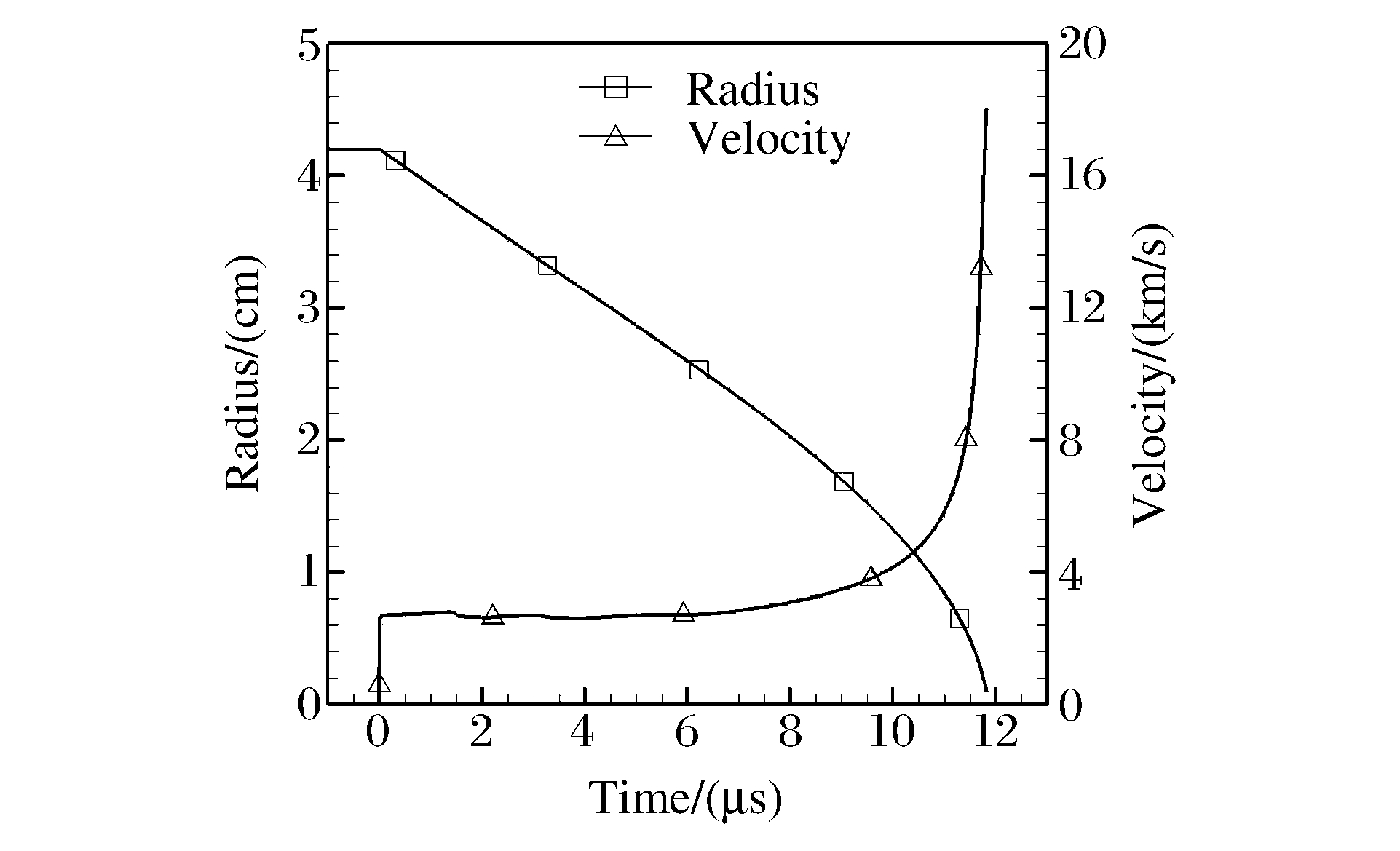 利用零维模型计算分析电磁驱动柱形薄套筒内爆压缩内嵌轴向磁场的过程。通过求解LC回路方程和套筒运动方程构成的方程组,得到3个无量纲参数(h, A, Π)的最优取值和磁通压缩过程的磁能转换效率。计算表明,在恒定电流驱动,且h < 0.2情况下,套筒半径的压缩比可达10以上。在1 MJ的驱动能量下,通过适当调节参数hAΠ,使其接近最优取值,模拟产生了1 167 T的超强磁场,同时磁能转化效率达到47.3%。计算结果和优化参数对内爆磁通压缩实验设计具有一定的理论指导意义。