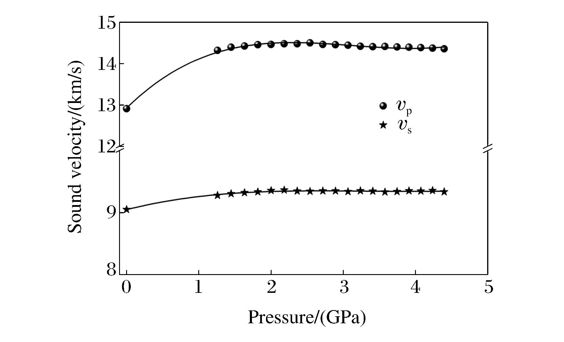 在六面顶压机装置上,采用完全静水压声速测量技术,同时测量了碳化硅-金刚石复合材料在0~4.3 GPa压力范围内的纵波声速(vp)和横波声速(vs),获得了其弹性模量与压力的关系。研究发现:当压力小于1.4 GPa时,由于材料内部微孔隙闭合,材料声速随压力的升高而增大;随着压力的继续增加,微孔隙闭合完毕,声速趋于稳定值。常压下,碳化硅-金刚石复合材料的剪切模量高于体积模量;而高压下微孔隙对纵波声速的影响明显大于横波声速,导致体积模量在约1.4 GPa时超过剪切模量。在1.4~4.3 GPa压力下,碳化硅-金刚石复合材料的体积模量和剪切模量分别约为360和350 GPa。