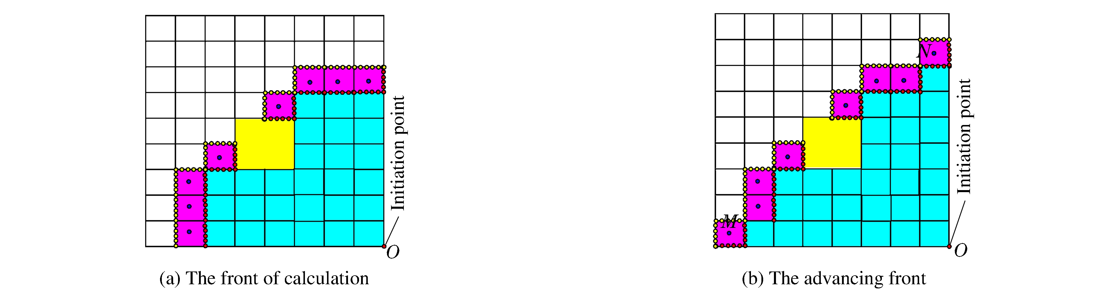 在各种工程定向爆破技术和爆轰数值模拟中,有时需要预先知道从起爆位置到装药内部某位置的起爆时间。为此,基于惠更斯原理,将网格生成前沿推进法的思想引入炸药爆轰计算中,给出了一种从炸药起爆位置到装药内部任意位置起爆时间的计算方法,通过几个数值算例验证了其有效性。该计算方法的特点是对于任何复杂装药结构均可给出从起爆位置到装药内部任意位置的起爆时间。
