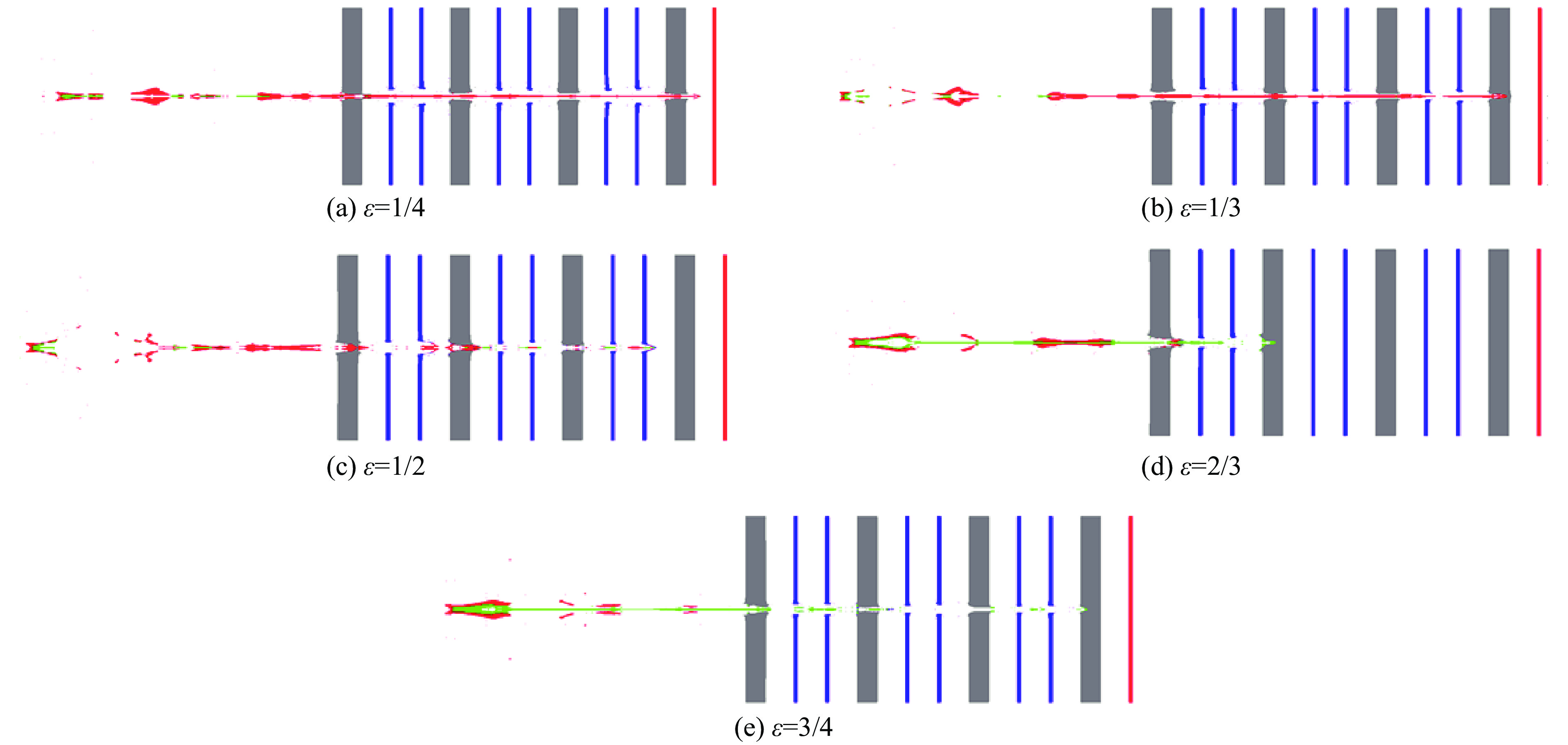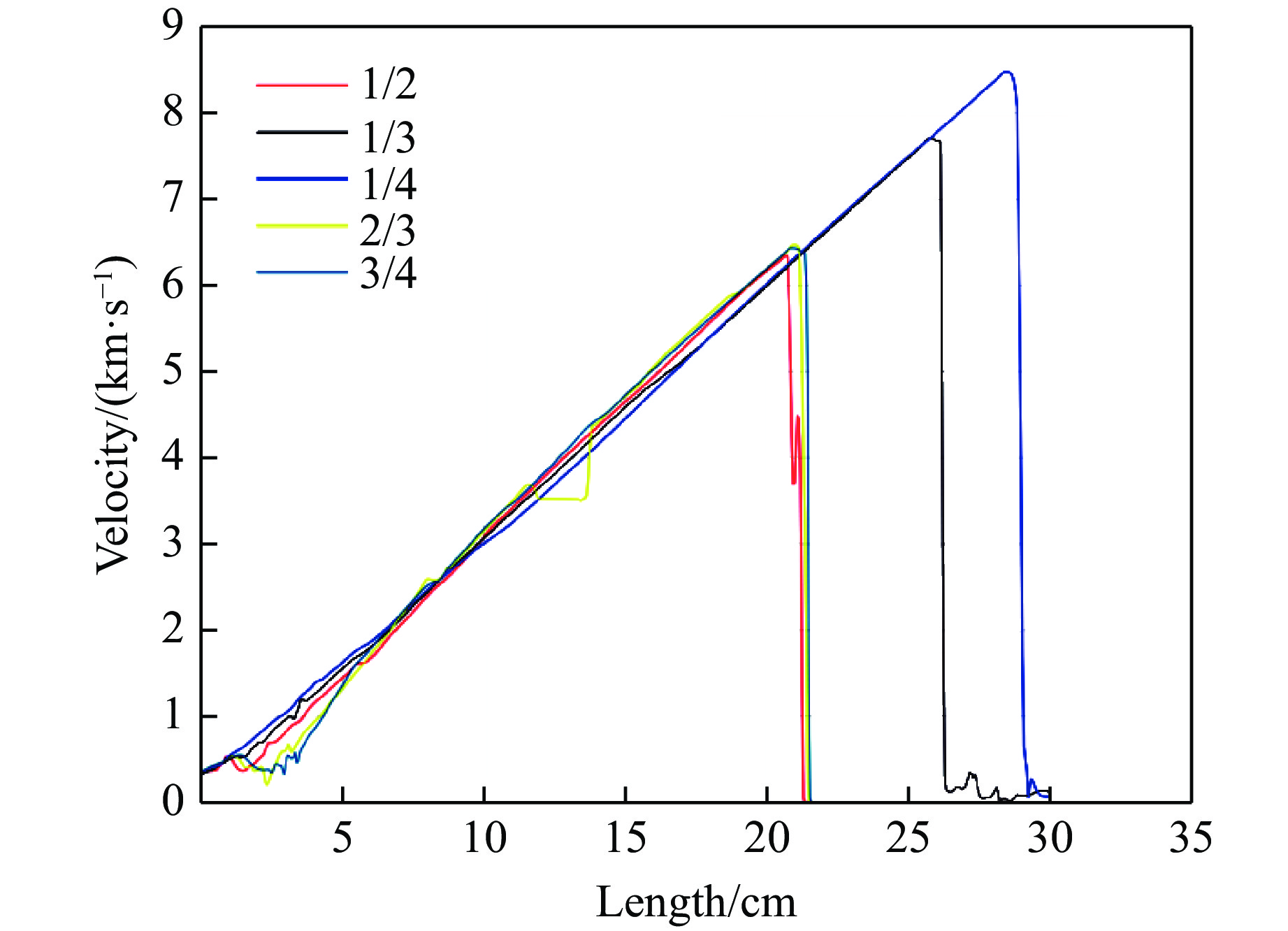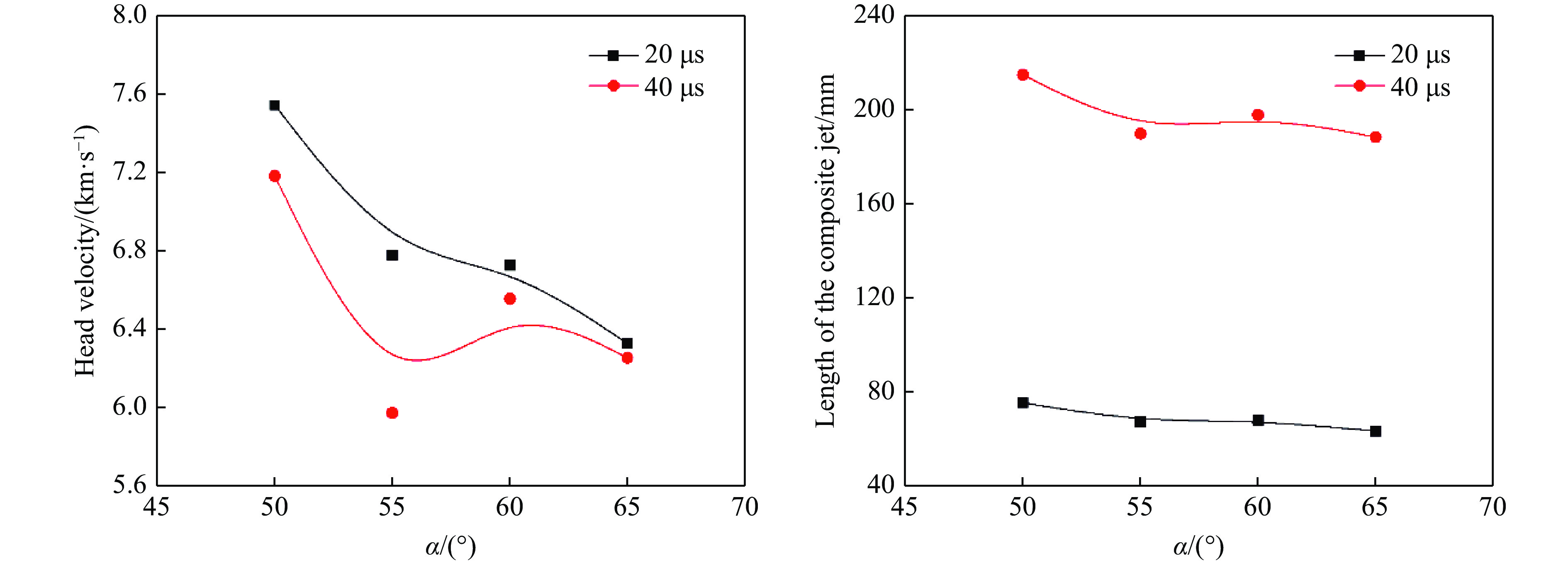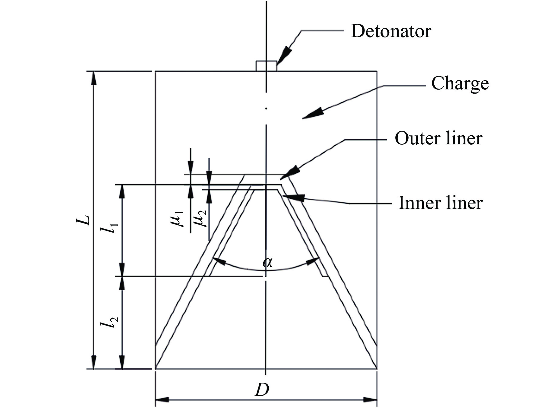 针对增强聚能射流的破甲后效问题,设计了等壁平顶锥形铜铝双层复合药型罩装药结构,采用冲击波物理显示欧拉动力学软件SPEED开展复合射流成型及对钢-铝间隔靶侵彻过程的数值模拟,分析内外双层药型罩高度比$\varepsilon $、药型罩锥角$\alpha $等参数对复合射流成型和间隔靶侵彻性能的影响规律。研究结果表明:复合射流的头部速度随$\varepsilon $增大呈先减小后增加的趋势,在ε约为1/2时,可形成具有相近速度的铜铝同轴复合射流微元,利于铝射流微元与目标相互作用实现后效增强毁伤;且当α在50°~60°范围内时,复合射流中段为集中的铝射流微元,更利于侵彻后的爆炸或爆燃反应。对优化参数的复合药型罩结构数值模拟结果与文献公布的实验结果吻合较好。研究结果对增强后效聚能装药设计具有参考价值。