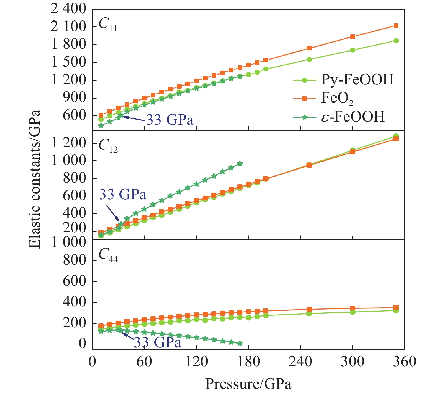 高压下Py-FeO2、Py-FeOOH和ε-FeOOH晶体结构与弹性特征的第一性原理研究