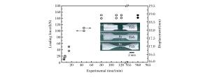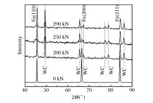 Sample volume/(mm3) Loading force/(kN) a/(nm) V/(nm3) p/(GPa) 59 200 0.2861 0.023426 0.88 59 250 0.2860 0.023405 1.05 59 290 0.2858 0.023353 1.40 6 150 0.2842 0.022950 4.76 -