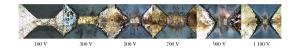 Figure  6.  Exploding foil pictures taken after exploding with different input voltages