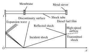 Experimental Study on Diesel Fuel Film Dispersed by Shock Wave and High-Speed Airflow