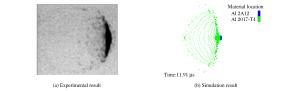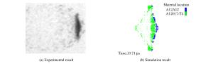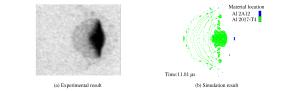 • 图  靶板厚度为0.5mm、撞击速度为4.24km/s时的实验与模拟结果对比