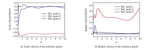 Figure  8.  Velocity curves of the reference points with different length-radius ratios