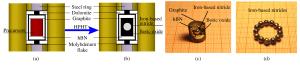 摘要: 以二元金属氧化物(氧化铁、氧化钴、氧化镍)和六方氮化硼为反应前驱体,在大腔体压机提供的高温高压条件下(5GPa、1673K),通过发生复合高压固相复分解(HPSSM)反应合成组分可调控的三元铁基金属氮化物圆球状块体材料ε-Fe3-xMxN1+δ(M=Co, Ni)。并利用X射线粉末衍射(XPD)、场发射扫描电子显微镜(FE-SEM)、高分辨率透射电子显微镜(HRTEM)等多种材料表征手段对高压合成的三元铁基金属氮化物进行结构表征, 同时基于密度泛函理论(DFT)的第一性原理计算探究压力对HPSSM反应的影响。研究结果表明,高压密闭环境有利于制备高质量金属氮化物,HPSSM反应合成法是制备铁基金属氮化物块体材料的一种有效方法。Abstract: Ternary ε-Fe3-xMxN1+δ (M=Co, Ni) were synthesized as spherical bulk materials with variable components through composite high-pressure solid-state metathesis (HPSSM) reactions under 5GPa and at 1673K, employing diversity binary metal oxides (Fe2O3, CoO, NiO) and hBN as the reaction precursors.The structural characterizations of the as-prepared iron-based metal nitrides were determined by X-ray powder diffraction (XPD), field-emission scanning electronic microscopy (FE-SEM) and high-resolution transmission electron microscope (HRTEM), etc.First-principles calculations were used to explore the effect of pressure on the reaction enthalpy ΔH in HPSSM.Our results show that the high-pressure confinement environment is favorable for the synthesis of high-quality metal nitrides, and the HPSSM reaction is an effective synthetic route to the bulk iron-based metal nitrides.