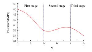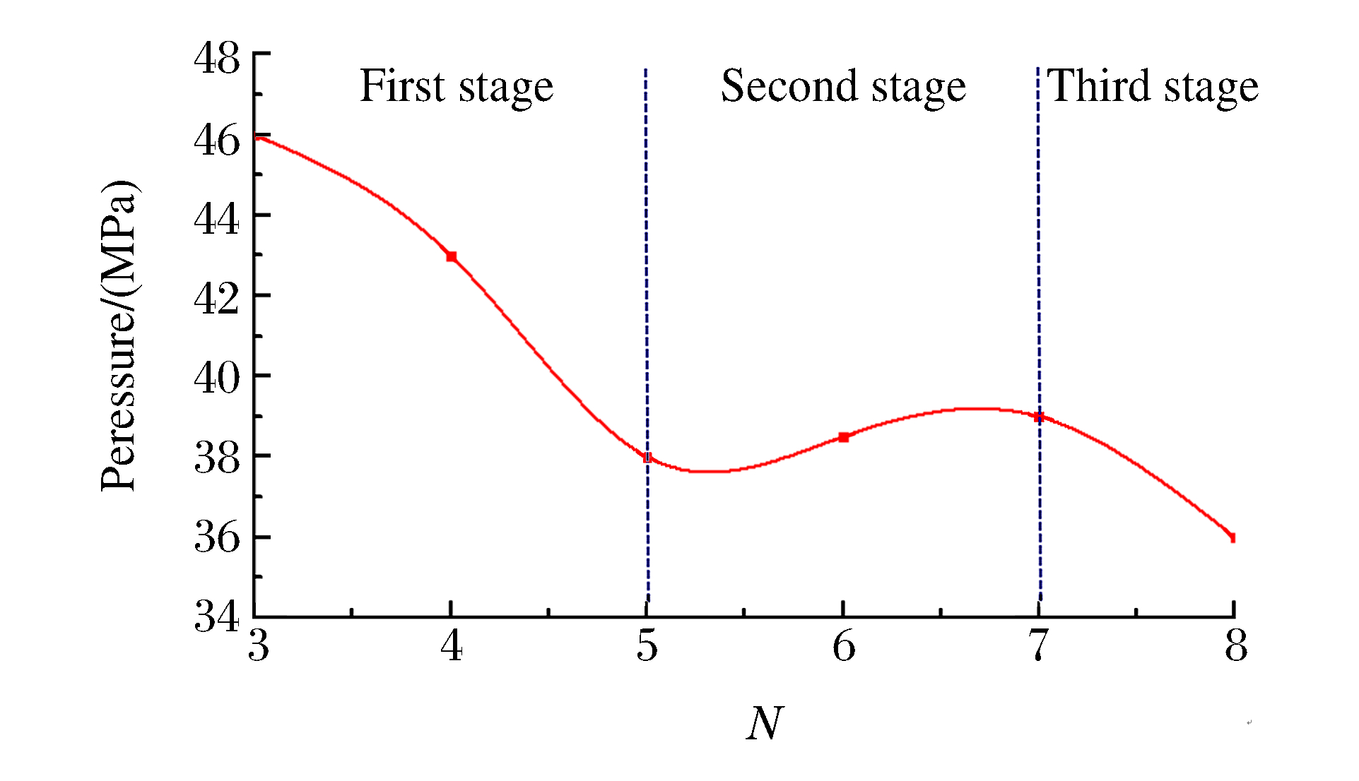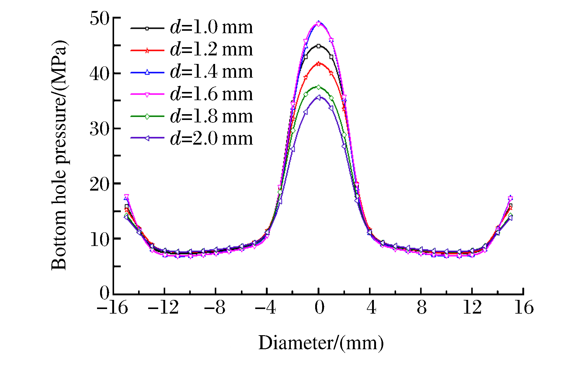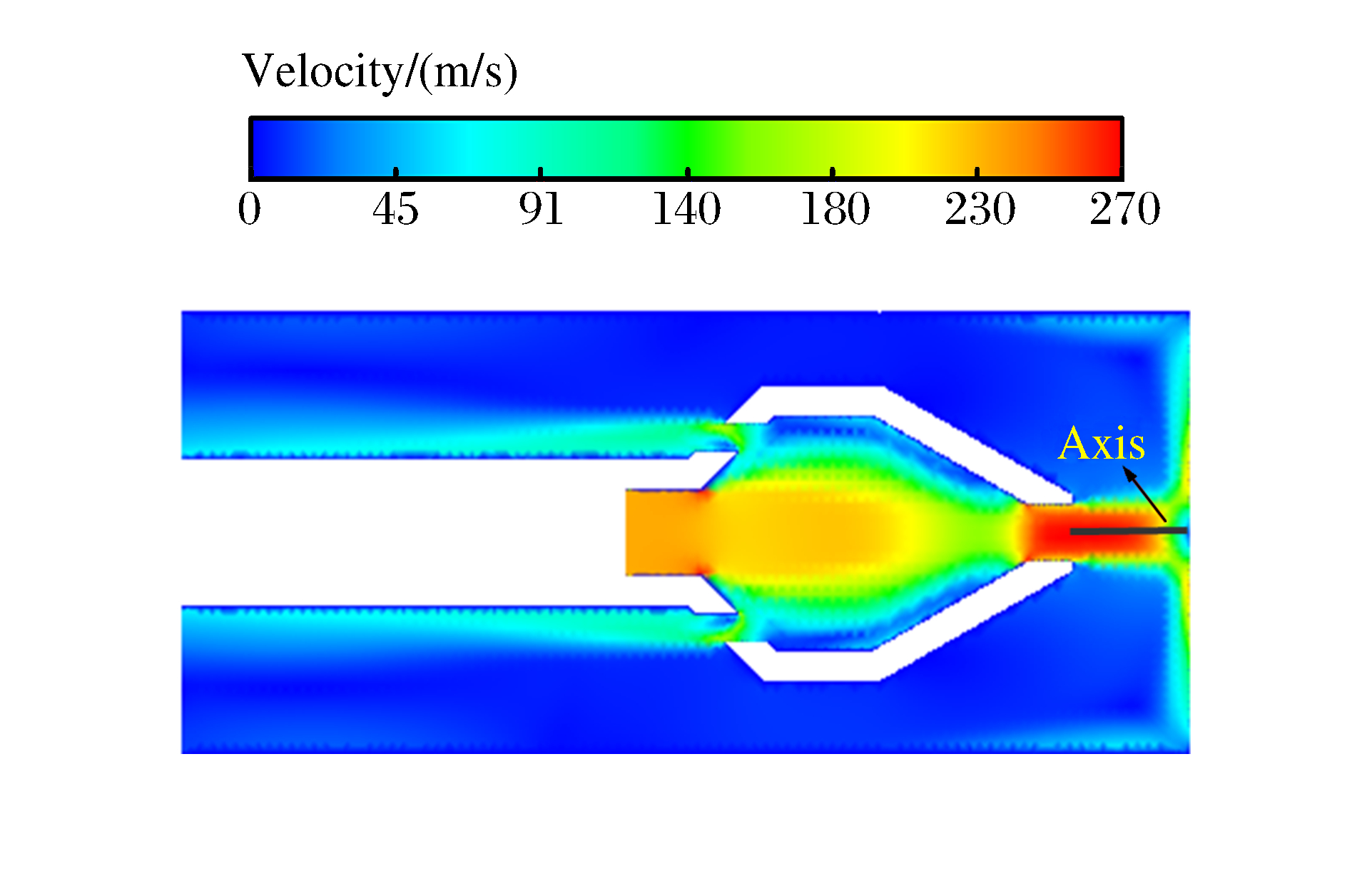 Scheme N d/(mm) α/(°) 1 3 2.0 0 2 4 2.0 0 3 5 2.0 0 4 6 2.0 0 5 7 2.0 0 6 8 2.0 0 7 6 2.0 15 8 6 2.0 30 9 6 2.0 45 10 6 2.0 60 11 6 1.0 15 12 6 1.2 15 13 6 1.4 15 14 6 1.6 15 15 6 1.8 15 表 3 喷嘴轴向推进力