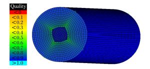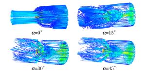 摘要: 喷嘴是水力水平钻孔设备的核心元件,改善其结构有利于提高低渗透油气资源开采的施工效率。因此基于计算流体动力学(CFD)技术,分析尾部流道结构参数对射流流场的影响,得出以下结论:尾部流道数N=6、倾角α满足15°<α<30°,喷嘴出口直径d=1.4mm时,喷嘴的破岩和排屑性能较好;合理设计N和d,有利于实现喷嘴自推进和射流破岩两项功能;合理设计α,能有效改善尾部流道的磨损情况,延长喷嘴使用寿命。Abstract: The nozzle is the core component of a hydraulic horizontal drilling equipment, and optimizing its structure is crucial for helping to improve the construction efficiency of exploiting low permeability oil and gas resources.Based on the computational fluid dynamics (CFD) approach, we studied the effects of the structural parameters of the tail flow (evenly distributed on the end of the nozzle) on the jet flow field.The results show that:when the number of the tail flow (N) is 6, with an angle (α) between 15° and 30° and a diameter (D) of 1.4mm, the nozzle exhibits good performance on the rock fragmentation and discharge; the reasonable design of N and D contributes to implementing the nozzle propulsion and the rock destruction by jet; the reasonable design of the jet nozzle angle α contributes to effectively reducing the abrasion of the jet nozzle and extending its service life.