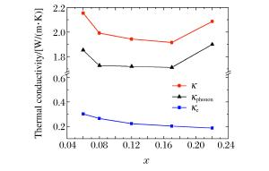 (me)0.04 -0.24 26.36 63.41 — 0.06 1.19 5.25 476.16 0.250 0.08 1.25 5.00 439.37 0.278 0.12 1.49 4.20 439.36 0.277 0.17 1.54 4.05 415.41 0.248 0.22 1.12 5.57 277.99 0.288 0.27 1.19 5.25 258.78 0.268 表 2 高压合成PbTe1+x的热电优值