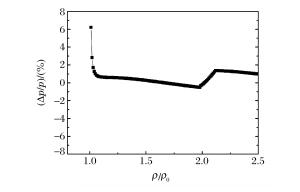 图  两种状态方程得到的钨合金冲击压强的相对差异