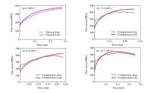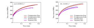 Figure  10.  Comparison of theoretical curves and experimental curves of tension and compression at other strain rates