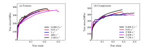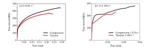 图  不同应变率下5083铝合金的拉伸和压缩应力-应变曲线