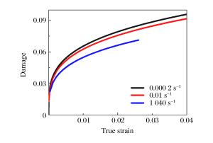 Figure  6.  Evolution law of damage varying with strain at different strain rates