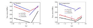 图  一定应变率下不同的拉伸和压缩应变对应的应力值
