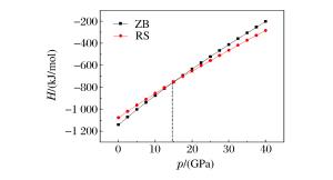 Structure Method a/(nm) b/(nm) c/(nm) B0/(GPa) B′0 ZB Present 0.573 38 0.573 38 0.573 38 57.16 4.478 0 Experimental 0.566 70[1] 0.566 70 0.566 70 69.30[1] Theoretical 0.582 00[9]