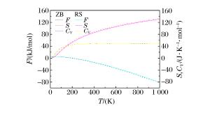 摘要: 采用基于第一性原理的平面波赝势和广义梯度近似方法,对闪锌矿(ZB)、纤锌矿(WZ)和岩盐(RS)结构的ZnSe在0~40 GPa压力下的热力学性质及相变特性进行了研究。通过数值计算得出3种结构ZnSe的能量随体积变化的曲线,在此基础上,研究了不同结构ZnSe的晶格常数、高温高压物态方程、结构相变及弹性性质,解释了高压下结构相变的机理,并通过焓相等原理得到ZB结构到RS结构的相变压力为14.95 GPa。最后,利用VASP软件结合Phonopy计算了ZB结构和RS结构ZnSe的声子谱,并将温度效应引入,得到亥姆霍兹自由能、熵和等容热容随温度的变化关系。Abstract: Using the plane wave pseudo-potential (PWP) and the general gradient approximation (GGA) methods based on the density functional theory, we performed an ab initio investigation of thermal dynamics of ZnSe in zinc-blende (ZB), rock-salt (RS) and wurtzite (WZ) phases.The lattice parameters, equation of state and phase transition properties of ZnSe in different phases were obtained from the calculated energy-volume curves.The results show that the RS structure is a stable phase at high pressure, and the transition pressure from ZB to RS phase is 14.95 GPa, which is well consistent with the experimental and theoretical results.In addition, the phonon spectra of ZnSe in ZB and RS phases were obtained through the quasi harmonic model, and the temperature dependence of their heat capacities, entropies, and free energies were also calculated.