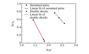 图  二次压缩和单次压缩下引爆时间tD(μs)和冲击压力p (GPa)的Pop关系图