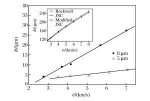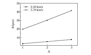 δ/(μm) m/(μg) v/(km/s) p/(GPa) TH/(K) h/(μm) 5 11 3.51 41.2 894 3.88 5 11 4.13 50.4 1181 4.46 5 11 5.09 68.5 1798 4.57 5 11 6.14 86.1 2616 6.15 5 11 7.06 106.4 3720 7.28 8 17 2.76 31.0 715 3.98 8 17 3.70 44.7 1015 9.01 8 17 4.16 52.1 1216 10.30 8 17 5.68 79.4 2275 19.86 8 17 7.02 104.5 3658 27.29 8 17 2.59/2.58 28.7/28.6 644/638 5.45 8 17 2.57/2.51/2.48 28.4/27.6/27.3 625/609/604 7.88 8 17 5.72/5.96 79.8/84.4 2293/2526 30.17 8 17 5.63/5.99/5.96 78.0/82.5/84.4 2220/2418/2526 41.51 -