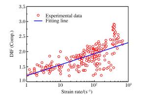 图  10  高应变率下混凝土材料压缩强度的DIF与拟合曲线