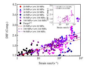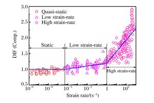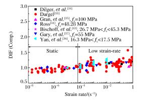 图  高应变率下不同强度混凝土材料压缩强度的DIF