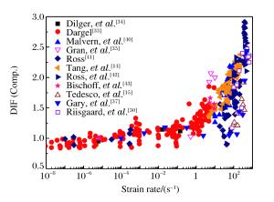 Figure  7.  DIF of compressive strength of plain concrete at high strain rates