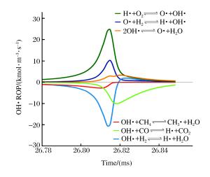 Table 2. Maximum reaction rate of main elementary reactions during explosion of each scheme