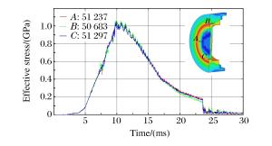 摘要: 运用LS-DYNA计算程序, 采用有限元方法模拟了在平衡炮发射过程中次口径战斗部的运动过程, 通过在推板组件上施加发射药燃烧产生的载荷, 计算了试验辅件在膛内运行过程中的受力情况, 并对其强度进行了校核。结合试验结果, 验证了平衡炮次口径发射试验辅件在膛内运行的安全性。该分析可为平衡炮及其他火炮的次口径发射技术研究提供参考。Abstract: In the present work we simulated the process of a sub-caliber projectile moving in the bore of a DAVIS gun using the finite element method based on the LS-DYNA calculation program.By loading the pressure of the gases from the propellant burning on the pushing module, we calculated the stress of the test accessories moving in the bore and checked its strength.Further, we verified the safety of the test accessories of the sub-caliber projectile using the simulation and the experimental results.This analysis can serve as a reference for refining the sub-caliber launching technique of the DAVIS gun and other guns.
