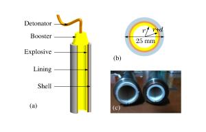 Load d/(mm) Liningmaterial Liningthickness/(mm) Pulse widthof load/(μs) Peak pressureof load/(GPa) Load 1 1.9 2.5 19 Load 2 1.9 Copper 1.5 2.5 12 Load 3 1.2 1.0 19 -