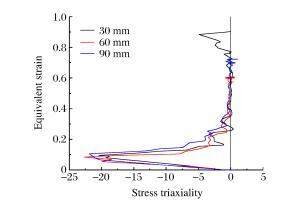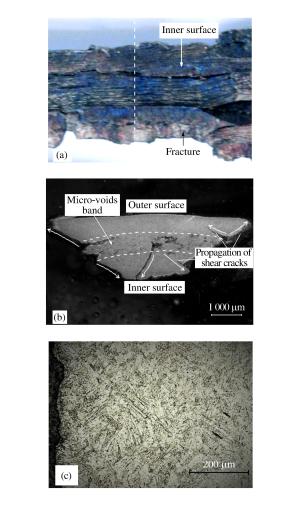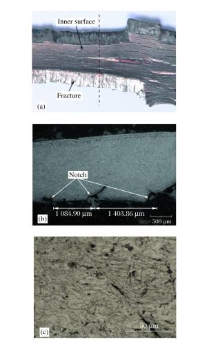 摘要: 金属柱壳外爆的膨胀碎裂过程及机理十分复杂,与多个因素有关。对TA2钛合金柱壳在不同装药爆炸驱动下的膨胀碎裂开展实验研究,探讨载荷特性对金属柱壳变形、碎裂过程及碎片特征的影响。结果显示:在较高爆炸压力作用下,柱壳厚度方向的中间部位首先形成损伤带,碎裂破坏从该处起始向内、外表面扩展,且随着载荷脉宽的减小,试样厚度中部的损伤带却更趋严重,试样外表面产生层裂破坏现象;在较低爆压下,断裂裂纹从内壁起始,沿45°或135°方向剪切扩展,断裂机制与较高爆压下不同。分析认为,不同特性爆炸冲击波来回反射、相互作用会导致不同机制竞争,影响柱壳断裂起始、裂纹扩展过程及模式。Abstract: The explosively driven fragmentation of ductile metals is a complex phenomenon, for that the fracture modes and mechanisms are affected by materials, configuration and explosive energy in different ways.In this research, we investigated experimentally the deformation and fracture behavior of the exploded TA2 titanium alloy cylinders driven by varied charges.The results show that the shearing fracture of TA2 cylinders subjected to a high explosion pressure is initiated from the middle of the cylinder in the radial direction where a region of damage and micro-voids is formed, and then propagates to the inner and outer surfaces. As the detonation wavelength decreases, the damage and micro-voids formed in the middle of wall thickness deteriorate, and the spallation occurs in the specimen's outer surface.While under a lower detonation pressure, the cracks originate from the inner surface, and extend in the shear direction of 45° or 135° to the radial.The fracture mechanism is different under different load pressures.It is found that the different states of the wave's propagation and reflection between the wall surfaces lead to the competition of multiple facture mechanisms, thereby affecting the failure mode of cylinder shell, such as the cracking origination and extension.