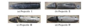 Projectile Ⅲ 406.5 Perforation of 5-layered targets Fracture in welding line of nose