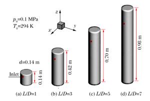 Figure  4.  Geometric models (L/D=1, 3, 5, 7)