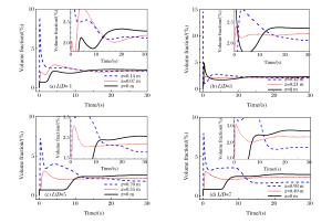 Figure  5.  Simulated mixing process for stratified propane-air mixture (C3H8:2.1% by volume) in vessel with L/D of 1, 3, 5 and 7, respectively