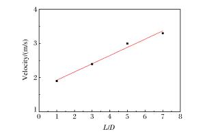 图  非均匀分布丙烷-空气的最大瞬态火焰传播速度随长径比变化(C3H8宏观体积比2.1%)