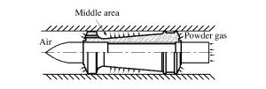 摘要: 为避免脱壳穿甲弹出炮管后与炮口制退器的相互干扰,在传统“马鞍形”弹托的基础上研究了一种新型结构弹托。分析了这种弹托的脱壳机理,并对该弹托进行了脱壳试验。研究结果表明,通过调整迎风面倾斜角度、减小迎风槽和背风槽的体积大小、在前定心部开设均匀分布的圆柱形通孔,可以减小弹托的分离角度,避免了弹托与制退器的相互干扰。Abstract: In order to avert the mutual interference that occurs between the armor piercing discarding sabot and the muzzle brake when the armor piercing projectile ejects out of the gun barrel, a novel sabot was designed based on the traditional saddle-shaped sabot.The discarding mechanism of the novel sabot was analyzed, and the discarding experiments of the sabots were carried out.The results show that by adopting a series of measures such as adjusting the tilt angle of the windward side, reducing the volume of the windward and the leeward troughs, distributing uniformly the opened cylindrical holes in the sabot's leading edge, the discarding angle of the sabot can be reduced, thereby averting the mutual interference between the armor piercing discarding sabot and the muzzle brake.