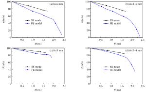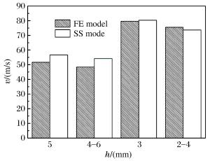 图  理论模型及有限元模型所得圆管完全压溃时配重的速度
