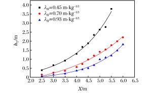 X/m Height of three-wave point/m λH=0.40 m·kg-1/3 λH=0.44 m·kg-1/3 λH=0.60 m·kg-1/3 2.5 0.68 0.38 0.34 3.0 1.12 0.61 0.57 3.5 1.71 0.84 0.81 4.0 2.05 1.15 1.05 4.5 2.74 1.72 1.37 5.0 3.37 2.51 2.05 5.5 4.15 3.11 2.51 表 3 HL-02的三波点高度的模拟值与经验值