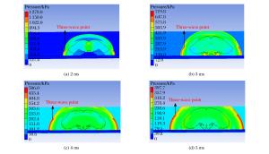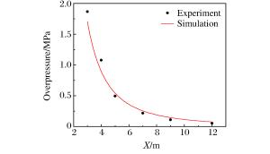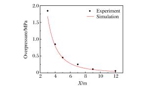 X/m Height of three-wave point/m Error between simulationand empirical values/% Simulation Empirical value 2.5 0.66 0.95 43.89 3.0 1.02 1.35 32.31 3.5 1.46 1.80 23.25 4.0 1.90 2.30 21.01 4.5 2.54 2.80 10.20 5.0 3.50 3.60 2.82 5.5 4.21 4.30 2.11 表 4 冲击波在不同位置处的波速